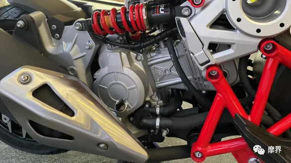 官方宣称该车的发动机,适合激烈驾驶,采用的是非独立散热器、双风扇和水管串联技术,200cc单缸水冷四气门发动机,最大马力19.8匹,最大扭矩17nm,压缩比11.6:1。