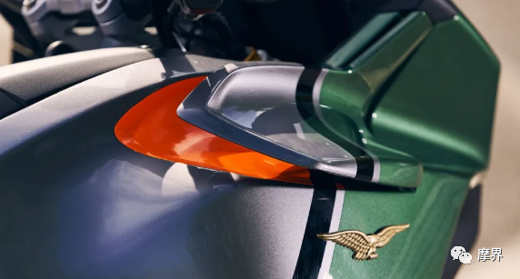 该自适应空气动力学是根据速度和驾驶模式自动调整油箱侧面导流板的位置,官方宣称像老鹰展开翅膀一样,带来更好的导流效果,从大大提升了骑行的舒适度。