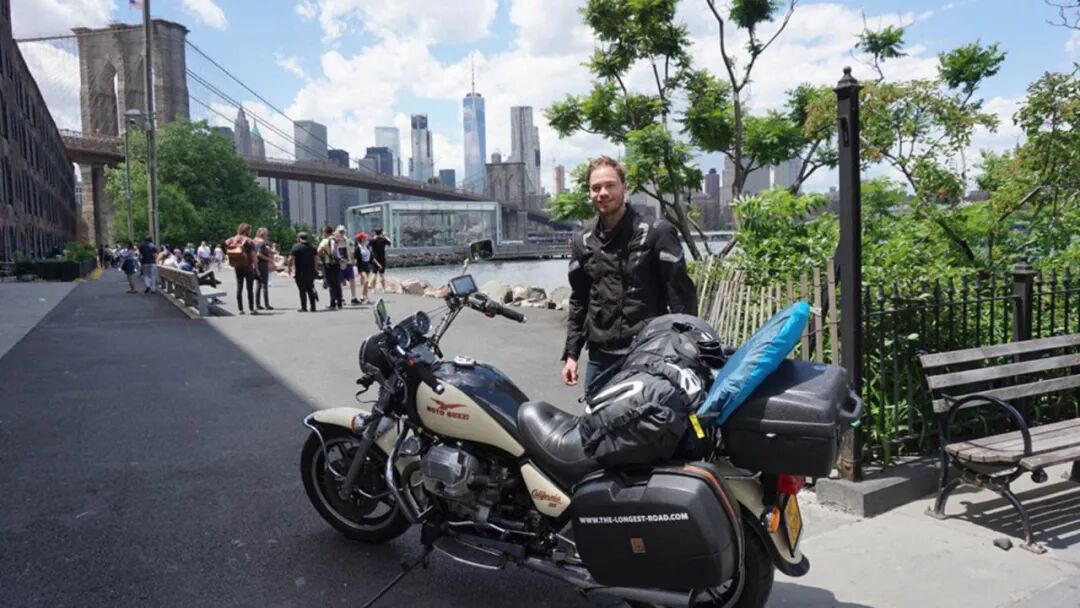 “从纽约出发,直奔阿拉斯加的最北端,向世界最南端的城镇——阿根廷乌斯怀亚奋力挺进!”荷兰骑手Bas Baaten 怀揣梦想驾驭Moto Guzzi踏上征程。