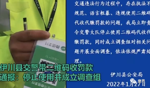 1月25日,河南洛阳,一名摩托车驾驶者因为违反交通法规被处罚,结果这名执法工作人员手持二维码进行收款,被驾驶者质疑之后,这名工作人员还推搡拍照的群众,随后此事被发到网上之后被广泛传播并引起了争议,警方随即回应,会立马向中队反馈该情况。...更多详情>>