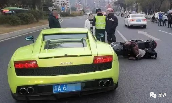 4、无证驾驶摩托逆行撞上兰博基尼...