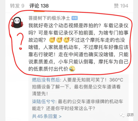 在此次事故中,很多车友表示小汽车司机员就是一个法盲,竟然说出“这是你走的车道吗?”,众所周知摩托车是机动车,不走机动车道才算违规。