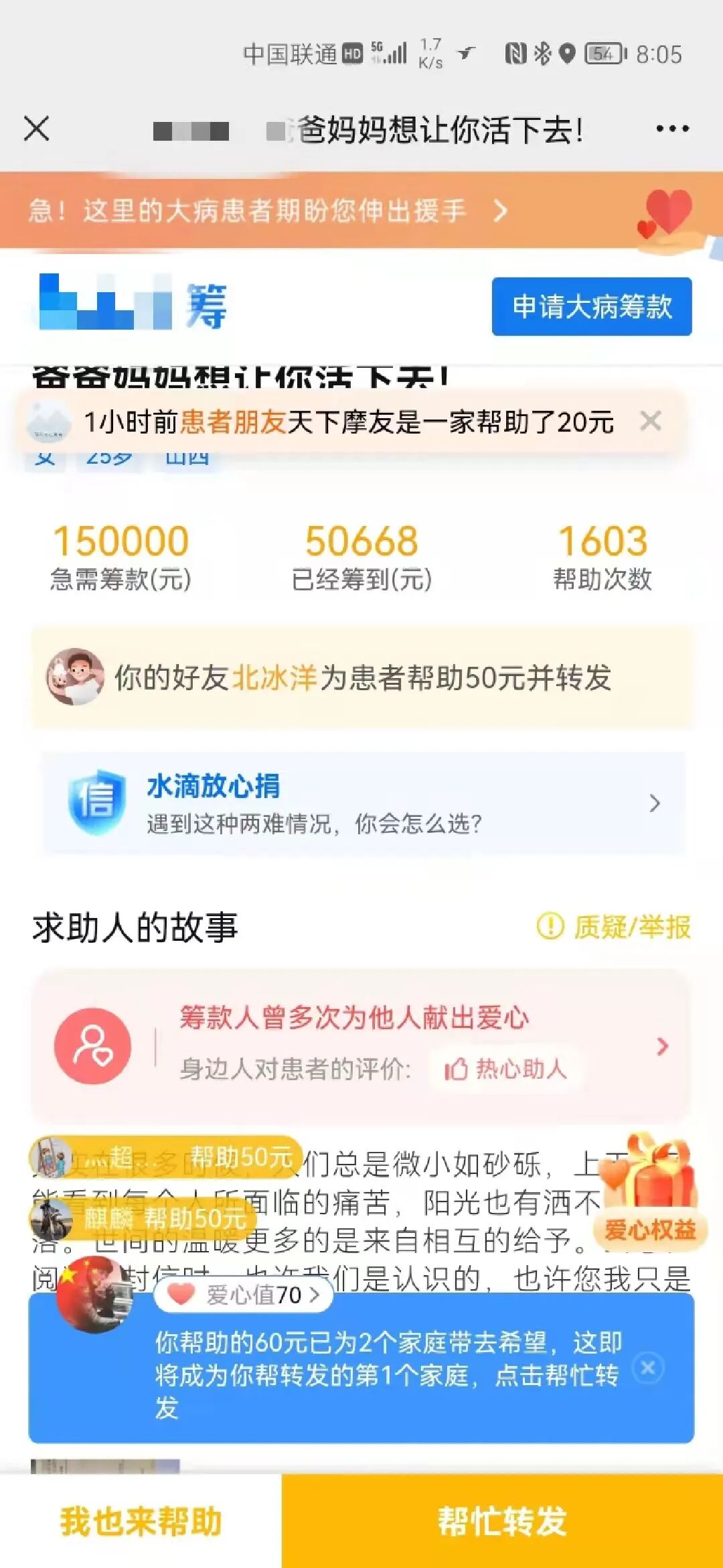 生命好轮回,苍天饶过谁,二姐有天骑着摩托车撞到山上,导致骨盆和胸椎骨折,发起了水滴筹被700多人举报下线了。