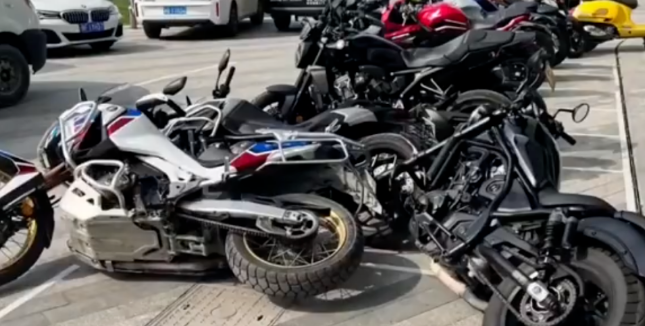 阮先生是一位拥有10年驾龄的摩托车爱好者,近日他在杭州本田大贸摩托店试驾了非洲双缸和CM1100,结果在试驾第二台CM1100车型时,好意想要停靠整齐,结果却撞上了其他4辆摩托车,连同试驾车都倒在地上,阮先生自己的手也被压受伤。