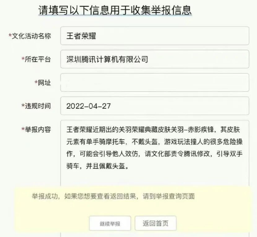而是已经波及到了游戏圈之外,主因就是关羽骑摩托车的设定,遭到了一些网友举报,王者荣耀游戏局内关羽骑摩托撞人会误导,教坏小朋友,所以问题性质已经不一样了。