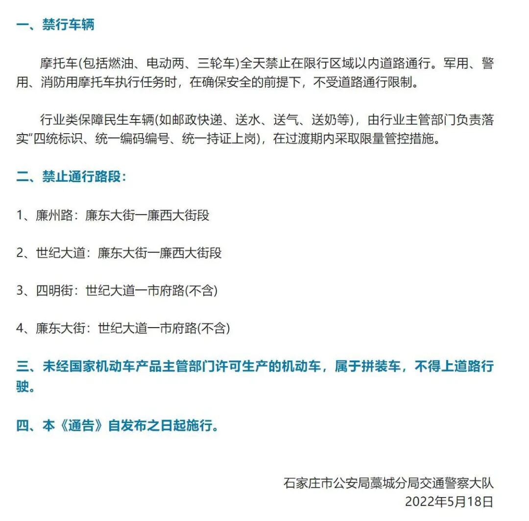 全,提升城市文明形象,根据《中华人民共和国道路交通安全法》及河北省实施《中华人民共和国道路交通安全法》办法等相关规定和我区主城区道路通行情况,现决定对主城区实行摩托车交通限行。