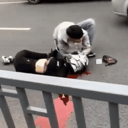 (腿部变形严重)的倒在地上