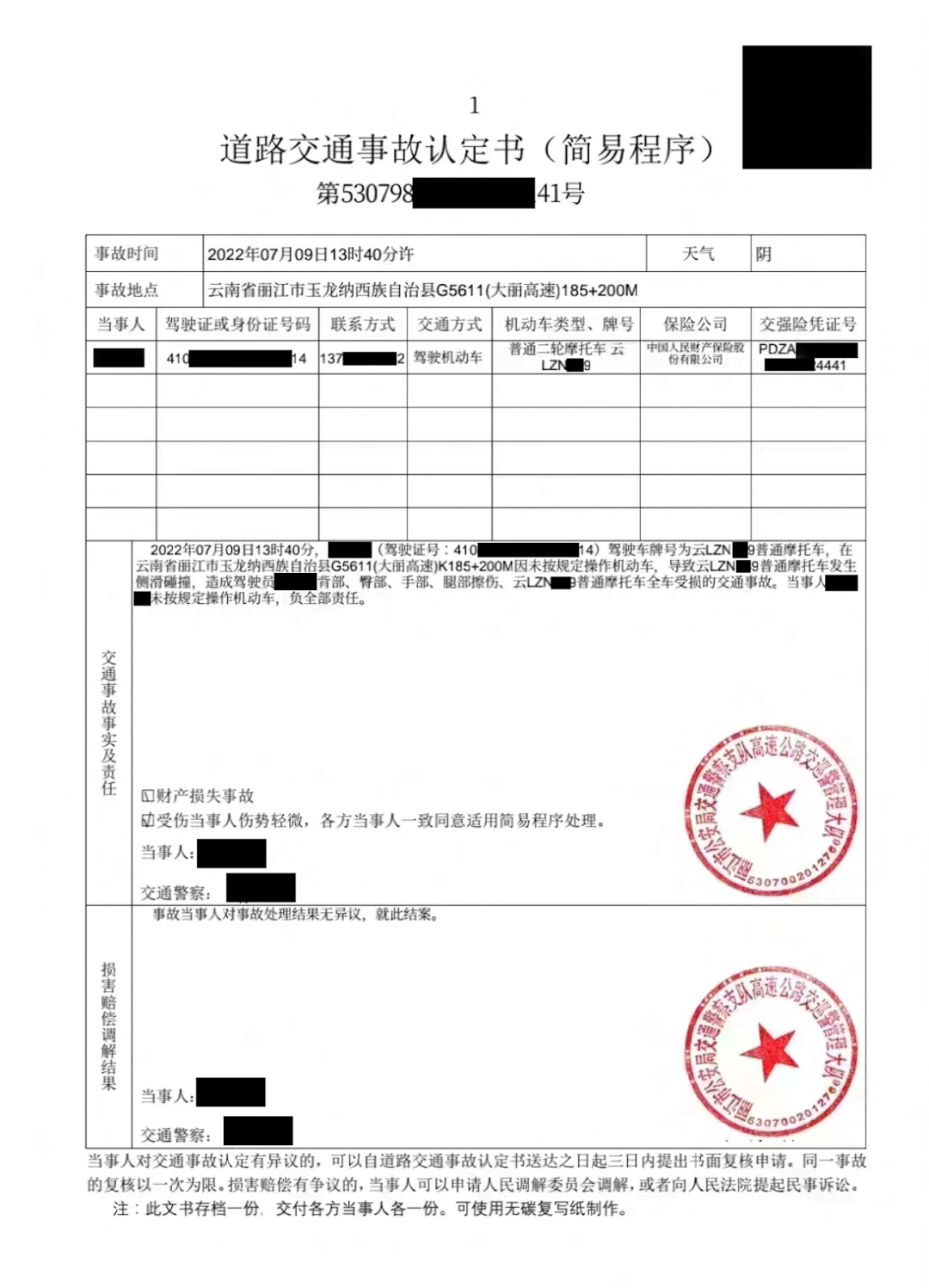 7月9日,一名800MT用户在云南丽江骑行过程中发生事故,当地经销商第一时间联系车主跟进售后事宜,并上报我司。我司高度关注此事,7月10日即派出服务工程师抵达云南丽江。当晚,交警部门出具《道路交通事故认定书》,认定该起事故系驾驶员未按规定操作机动车导致。