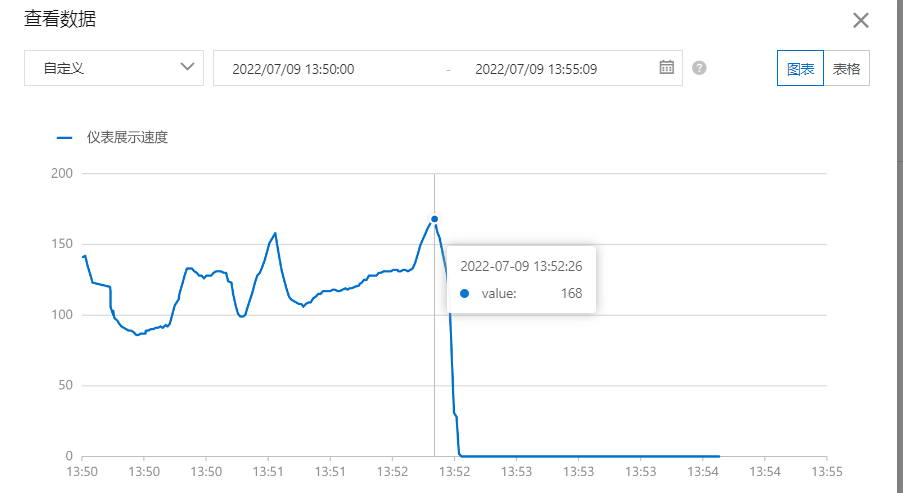 13时52分26秒,达到最高车速168km/h,随后减速;
