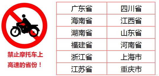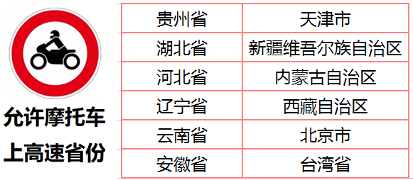 同时很多的车友需要走高速,但全国的各省份对于摩托车上高速的管理并不一致,如下: