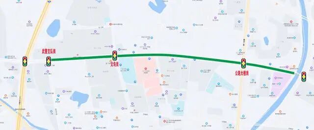 将武警支队岗、义乌岗及公路大楼岗东、西方向路口的车道设置调整为中间为直行车道,最左侧车道为汽车左转车道,最右侧车道为公交车、摩托车左转、掉头车道(允许其他机动车借用)。摩托车左转车道右置,避免汽摩在红绿灯处混行。