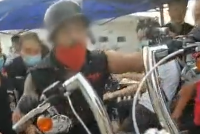 据目击者称,李某在进入惠济区某工舍时与防疫人员发生口角,当时李某驾驶一辆疑似哈雷的摩托车,穿着皮背心,戴着瓢盔。