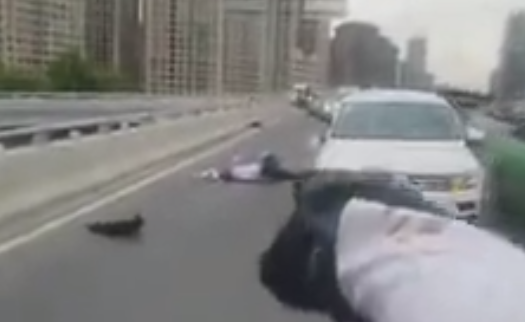 来自当时现场的一名宝马摩托驾驶者称,一辆摩托车因为速度太慢,变道挤不进去突然和左侧的汽车发生碰撞,而后又与后面的汽车发生第二次碾压。