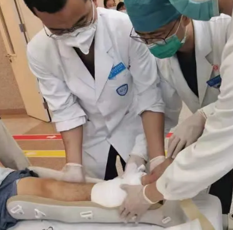 比较幸运的是,伤者均佩戴头盔,没有伤及头部、腹部等其他重要脏器。