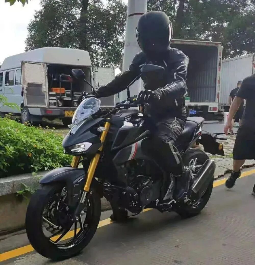 直径43mm前减震,铝合金后摇臂和西互刹车卡钳等,不过是否真的如陶总所说的这样,就看摩博会上的表现