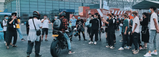 在每年摩博会上吸引很多人的关注,其中有规规矩矩骑车的,也有少数张扬一些的,他们会挑一些人多的地方进行炫技,以吸引大家注意为目的。