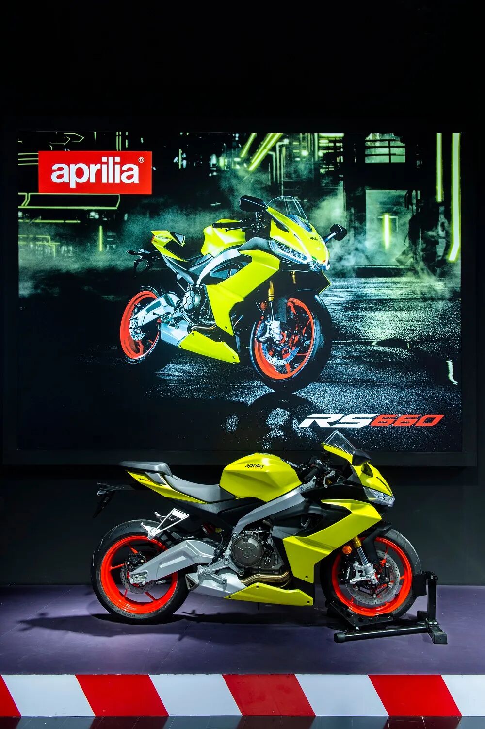 基于新的技术平台打造、搭载全新660cc并列双缸发动机,集合了精密设计与先进技术的新一代轻量化高性能摩托车:Aprilia RS 660和 Tuono 660即将迎来首批交付。凭借多年赛事经验打磨而成的顶尖技术,赋予Aprilia RS 660和 Tuono 660热血贲张的动态性能表现,带来速度与激情的双重享受。此次展出的RS 660磨砂金涂装,打破了传统红黑相间的配色,将RS 660动感、年轻的外观造型表现得淋漓尽致,树立了高性能摩托车的运动设计风格的标杆。