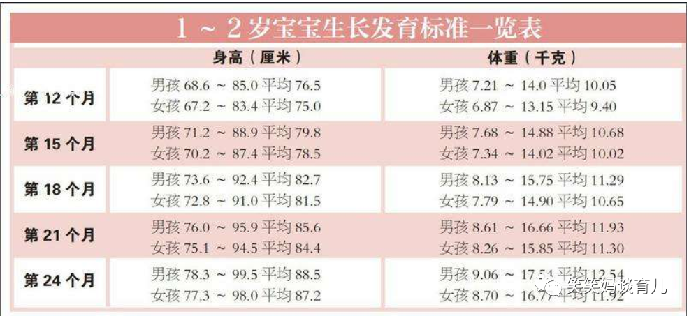 男孩:身高78.3-99.5cm,体重9.06-17.54kg,头围44.6cm-52.5cm。