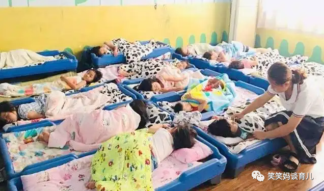 到了午休时刻,老师哄完这个又去哄那个。而妞妞已经躺在被窝里面睡着了。