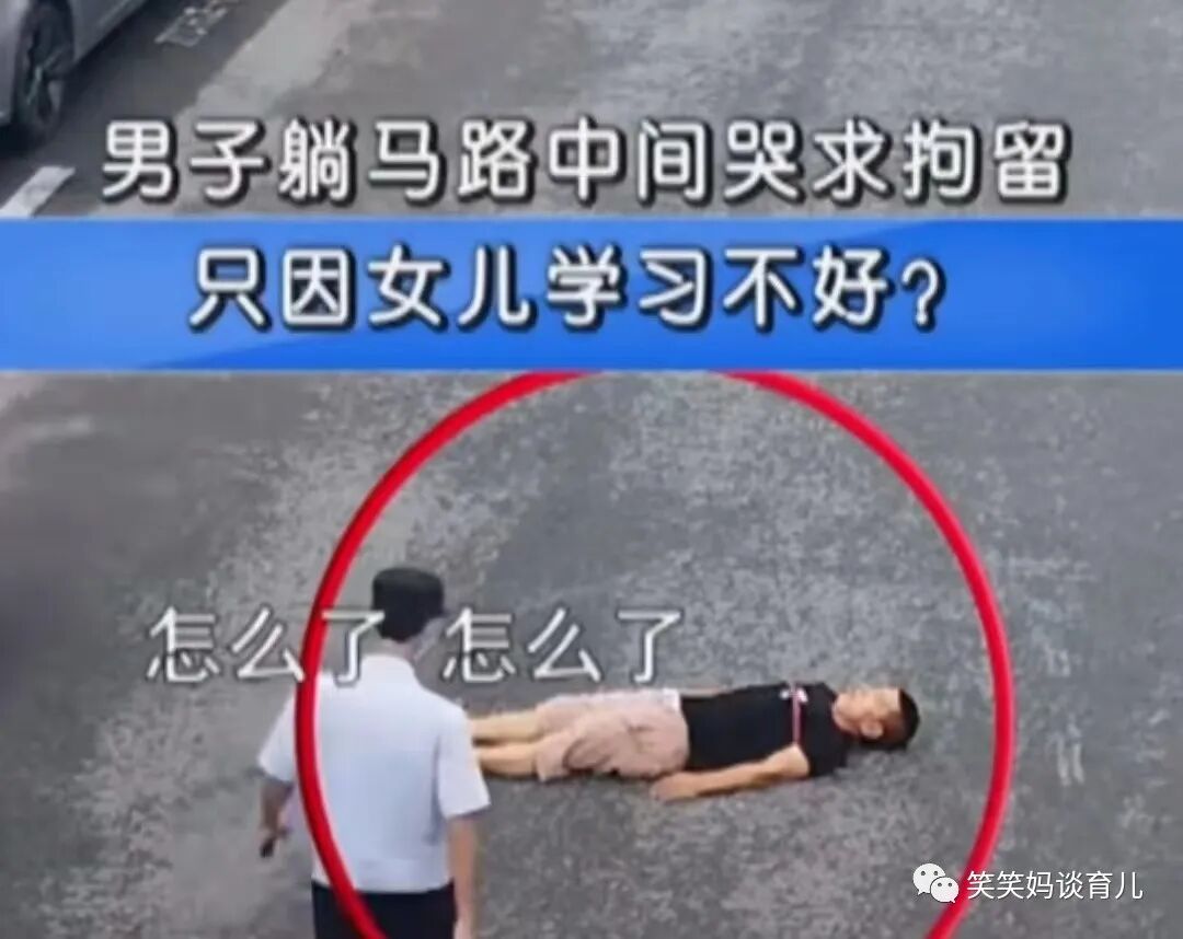 因为女儿做数学题,做不出来数学题800-700=900,这个爸爸就很生气,也不知道怎么教育孩子,最后崩溃地躺到马路中间,一边哭着说一边求拘留。
