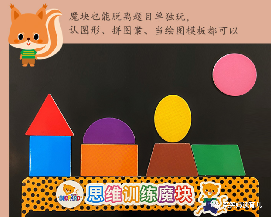 这些魔块可以单独地玩耍,让孩子认识图形、拼图形、当成绘本图模板都可以。