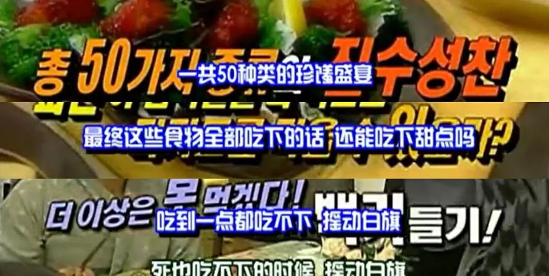 节目组给他们提供大量的食物,让他们一直吃,直到死也吃不下的时候就摇白旗。