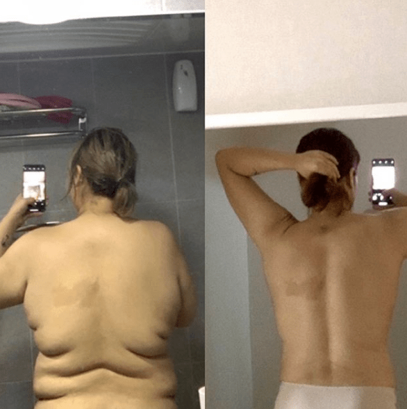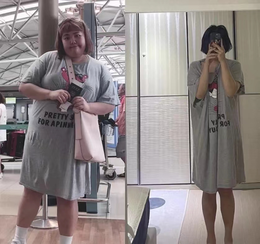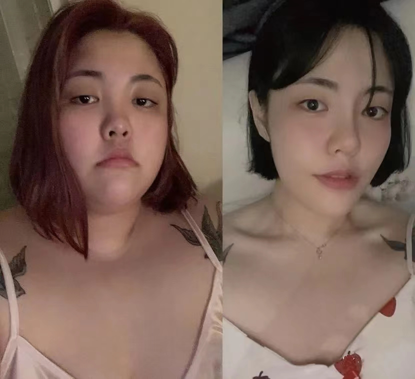 结果她真的是说到做到,3年时间,通过撸铁和饮食的控制,她瘦了100斤,五官轮廓也变得清晰立体。