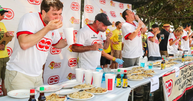 △美国职业大胃王选手马特·斯托尼,5分钟内吃了255个棉花糖,获得冠军。