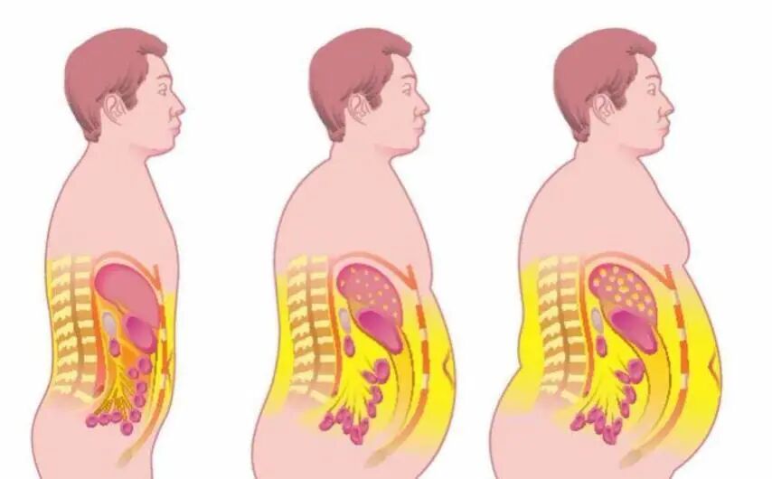 因为我们现在的很多饮食习惯和生活习惯都很容易导致内脏在体内堆积。内脏脂肪一多,就相当于在肚子里塞了更多的东西,腹部被挤得突出来是很正常的。