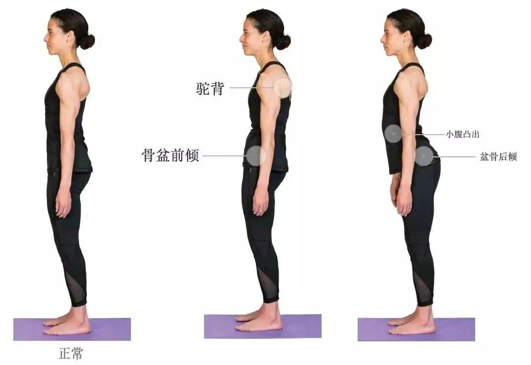 如果小腹突出伴随假性翘臀,就是骨盆前倾,如果伴随的是塌臀,就是骨盆后倾。