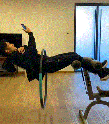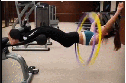 如果腰腹和腿部的力量不够强,让上半身后仰悬在半空中是很困难的,再加上转呼啦圈,需要身体在空中环绕,真就是难上加难了。