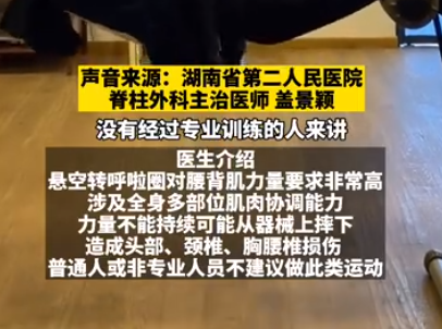 悬空转呼啦圈很容易拉伤腰背肌肉、扭伤腰椎,膝盖也有可能受伤。