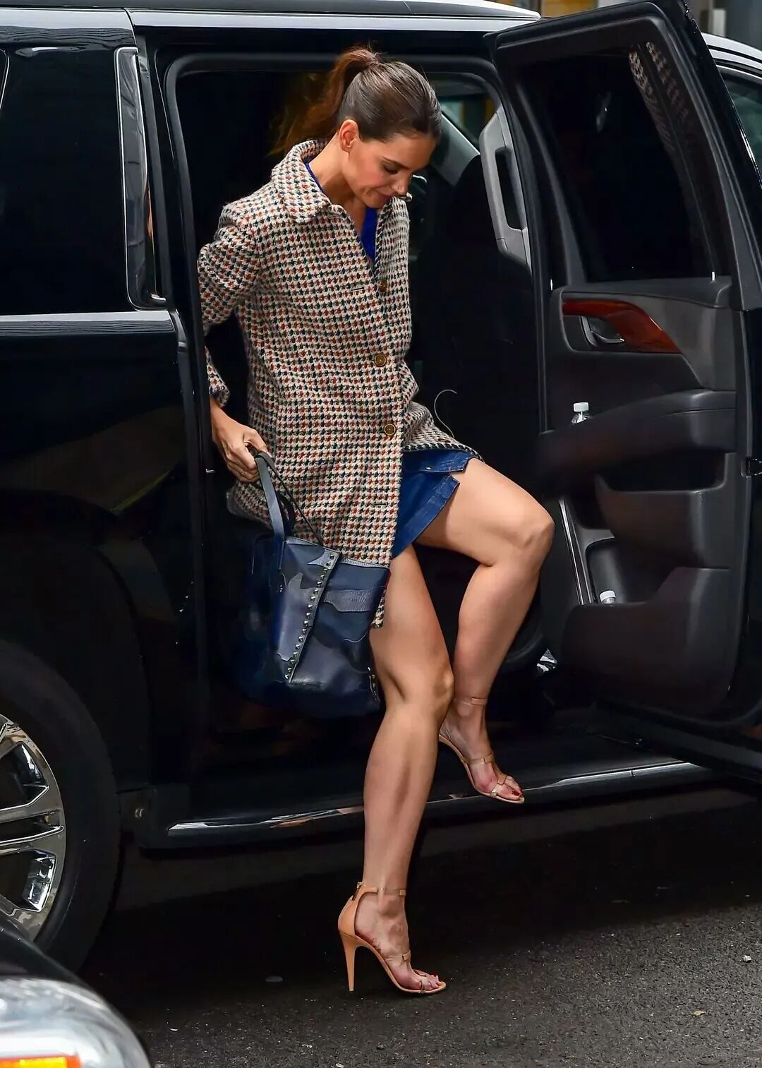 而且并不是说身高越高,跟腱就越长。身高175cm的美国演员Katie Holmes,同样是小腿是一道弧线的无脚脖星人。