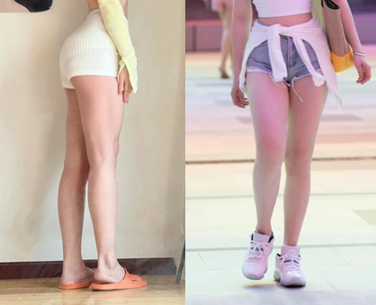 △昕昕子之前的万年小粗腿大概率就是小腿外翻导致的,好在天生细脚踝的基因还算顽强…