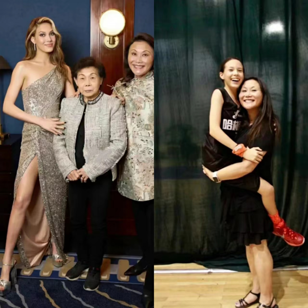 而从谷妈的全身照来看,谷爱凌的修长小腿+纤细脚踝大概率是来自于父亲的基因。