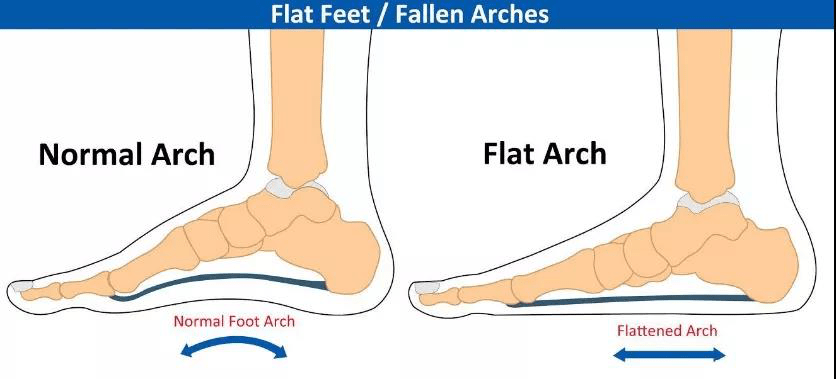 足弓塌陷会导致跟腱正常的牵拉力不能有效通过足弓作用于前足,这就影响了走路时的蹬地、抬足跟等环节。