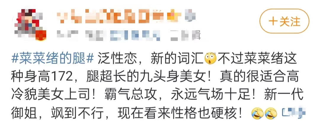 不过这样一双好腿谁说只能男人喜欢,对于菜菜绪出柜的消息,很多女性网友也开始大呼「姐姐我可以」~