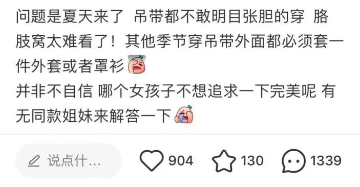 甚至因此夏天连吊带都不敢穿了,其他季节即使穿吊带也必须要遮住才敢出门......