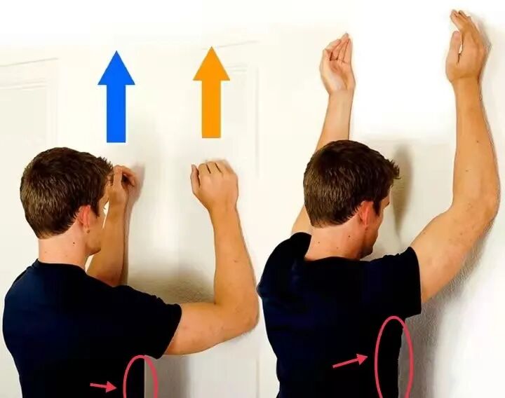 4、小臂沿着墙面向下滑动,回至初始状态。