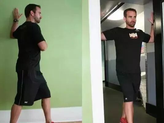 1、找到一个门或者一面墙,大臂水平放置,把手肘固定住;