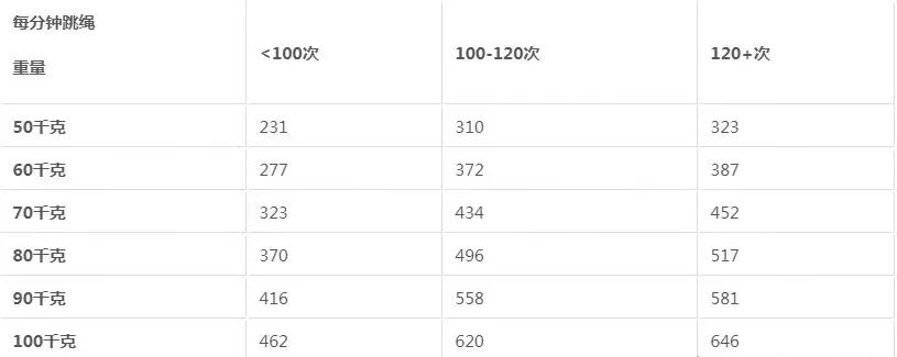 对刚开始跳绳的姐妹来说,跳绳训练往往会随着时间的增加越跳越累,所以真实的热量消耗并没有上表中的那么多。