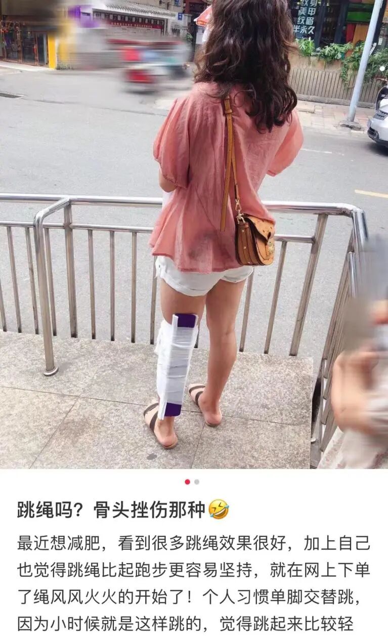 最离谱的还是下面这个姐妹,坚持每天跳绳1000个,最后不仅把自己跳骨折还成功的上了热搜 ↓