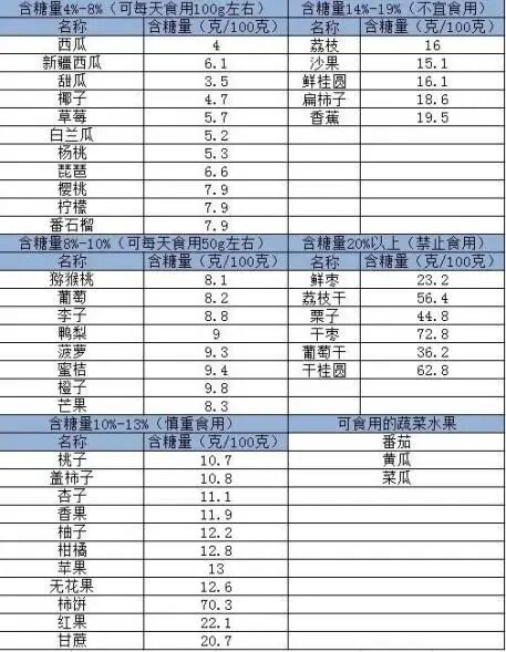 关于果蔬含糖量的多少,姐妹们可以参考下图