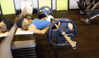 1、这个动作针对臀部,背部靠近固定的边缘,杠铃负重放置在大腿根部。