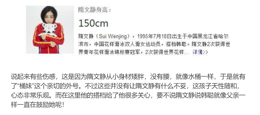 喜欢探究的一姐找了一些资料,其中比较普遍的版本是,「桶」这个代号来源于隋文静的一个「身材黑点」。