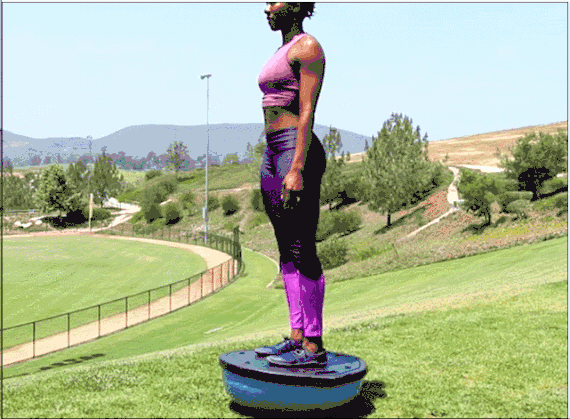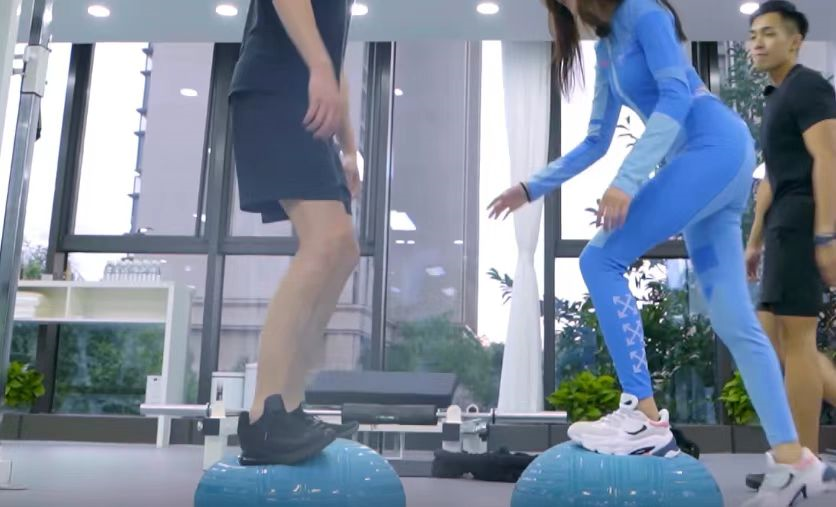 波速球这样在不平衡的平面训练的方式,对调整体态也非常有帮助。如果你有骨盆前倾、高低肩、长短腿等前后左右肌力不平衡导致的体态问题,站在波速球上就很容易重心往一侧偏。