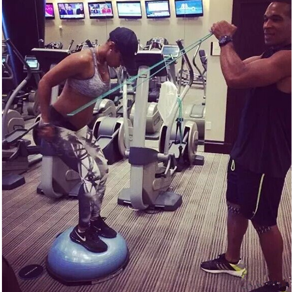 △美国歌手Kelly Rowland孕期使用波速球健身。