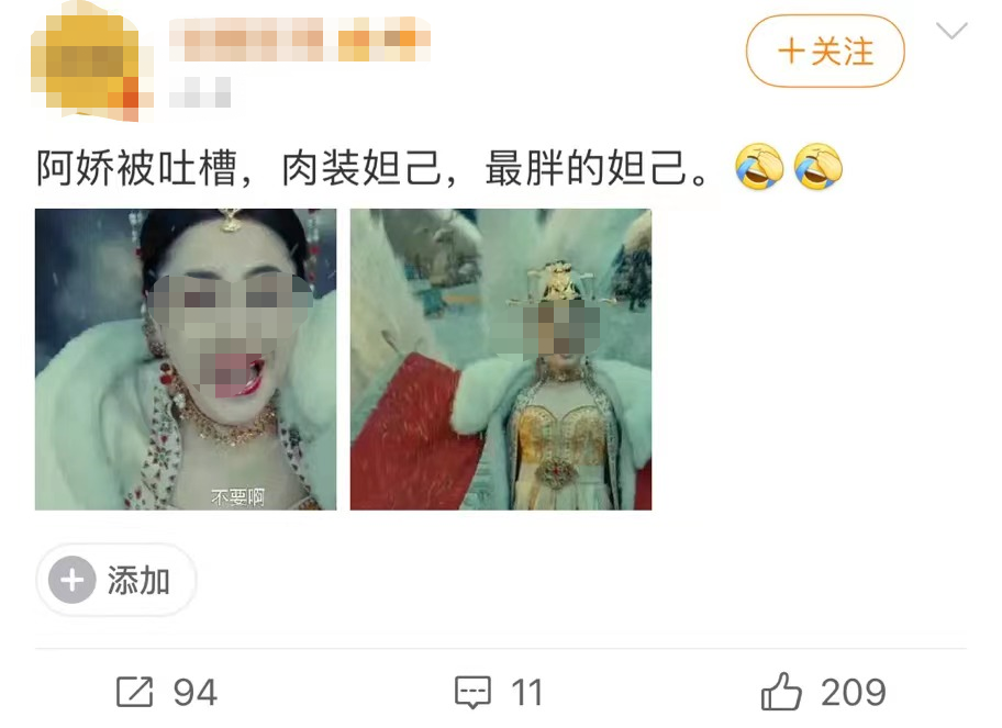 甚至在主演的新剧里,一度在微博上被吐槽为「肉装妲己」