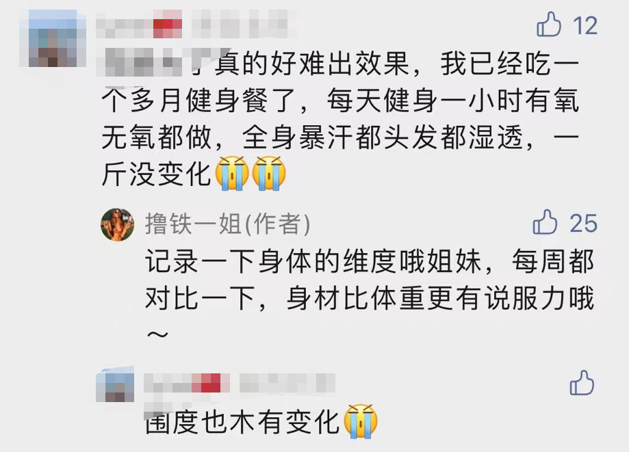 有的姐妹努力坚持吃了一个多月减脂餐,而且每天都保持一个小时的训练。