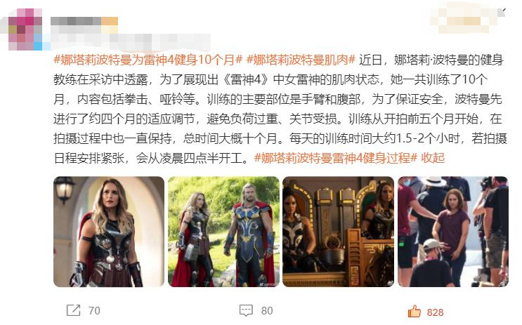 要知道为了能够展现出「雷神4」中女雷神的肌肉美感,她一共训练了10个月。